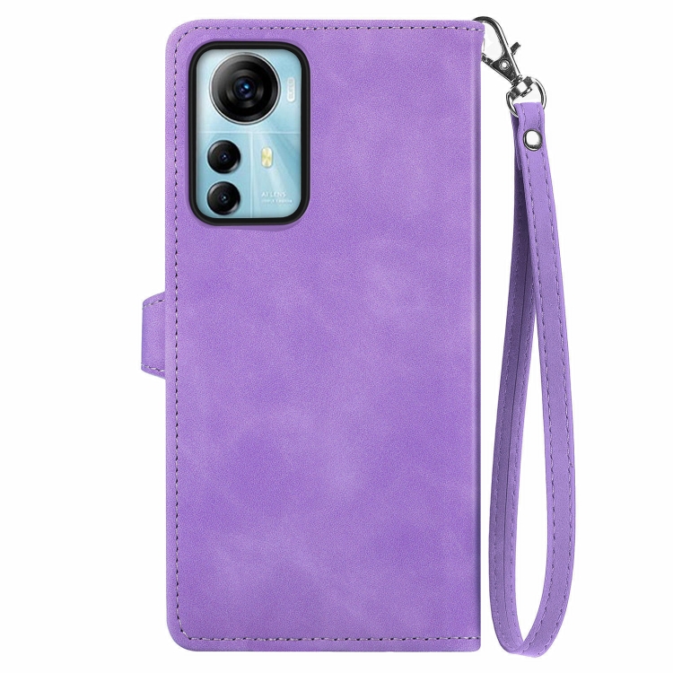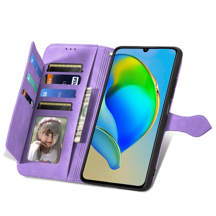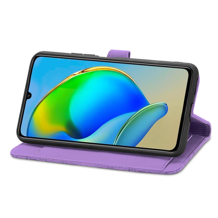 Funda de Cuero para ZTE Blade V41 con Cremallera y Flor en Relieve Inteligente (Púrpura)