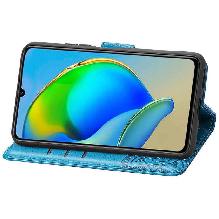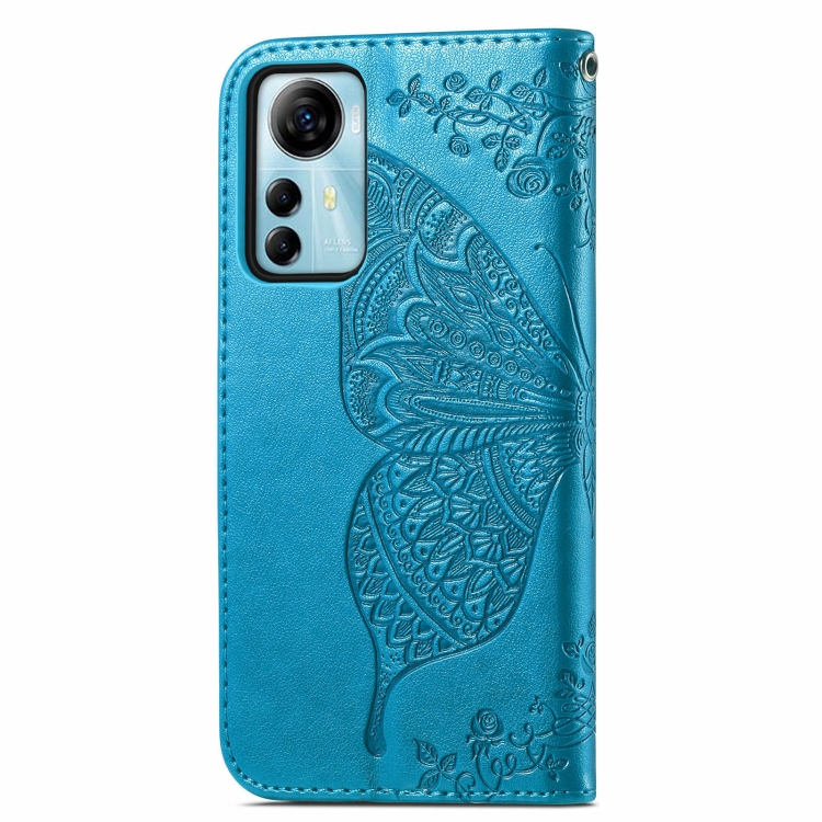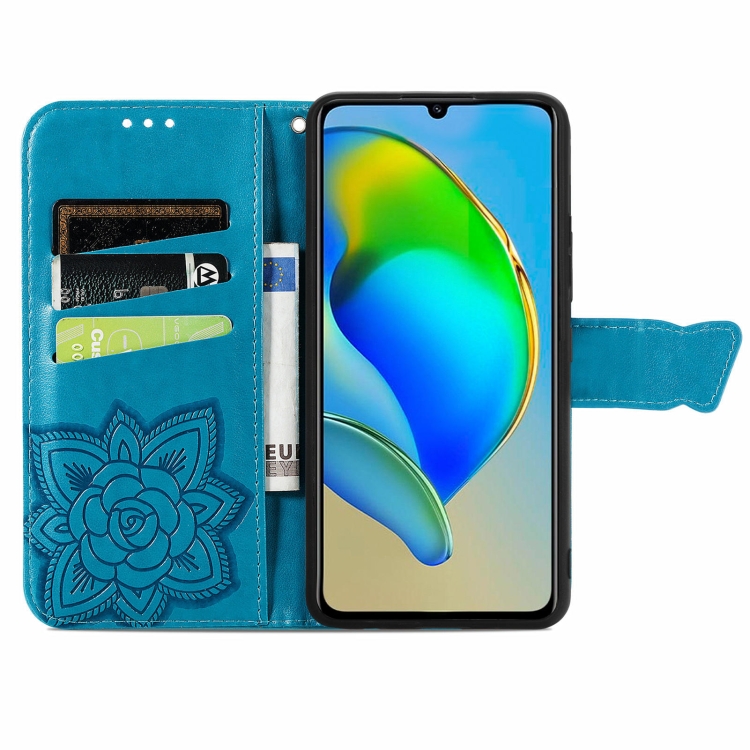 Funda de Cuero para ZTE Blade V41 Smart con Diseño Butterfly Love Flower en Relieve (Azul)