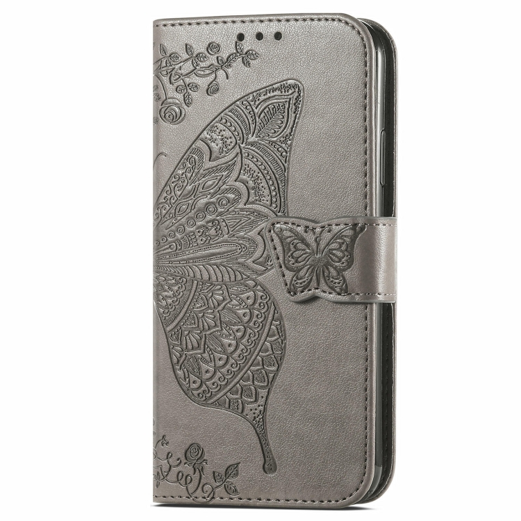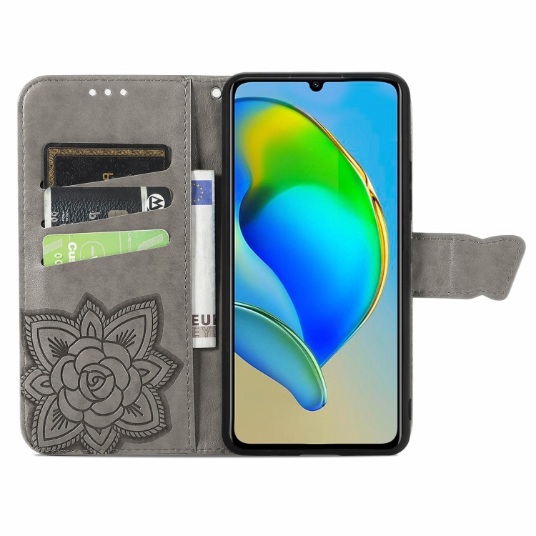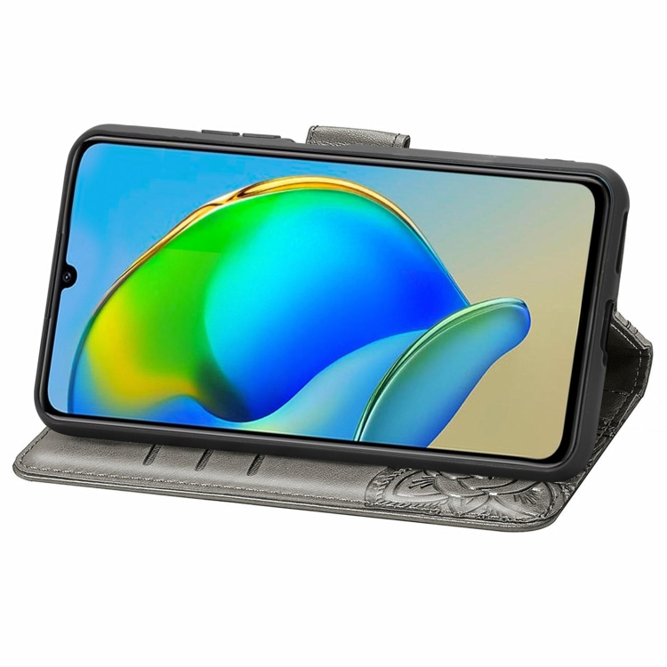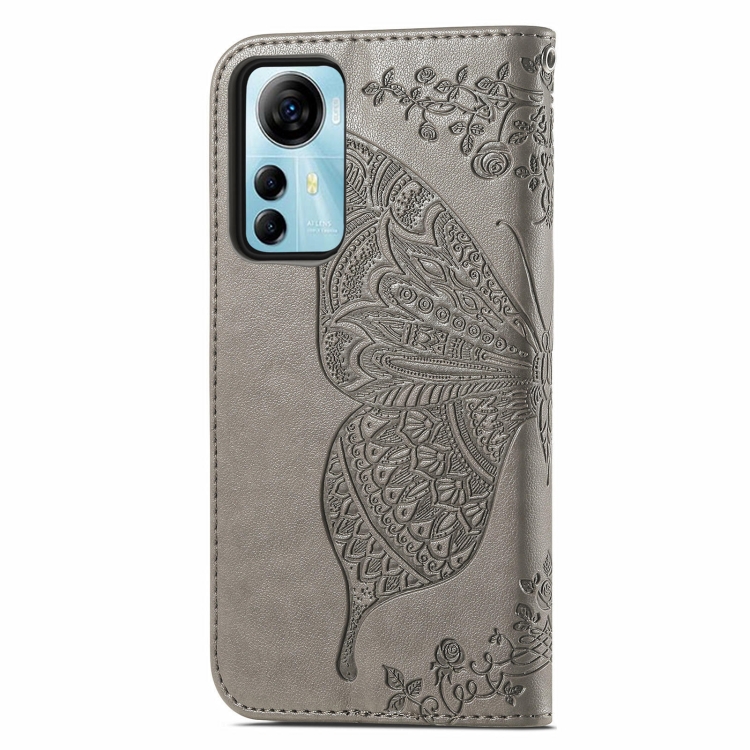 Funda de Cuero para ZTE Blade V41 Smart Butterfly Love Flower en Relieve (Gris)