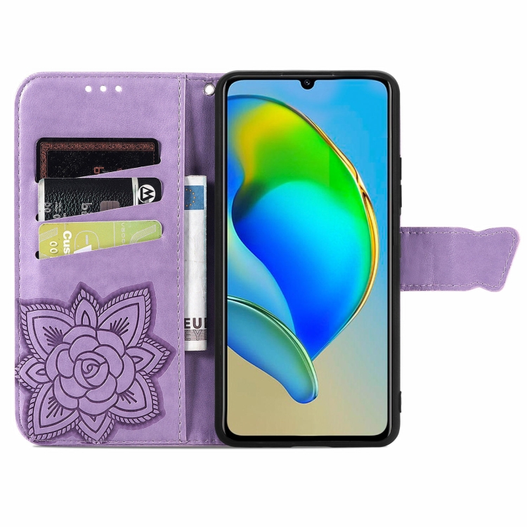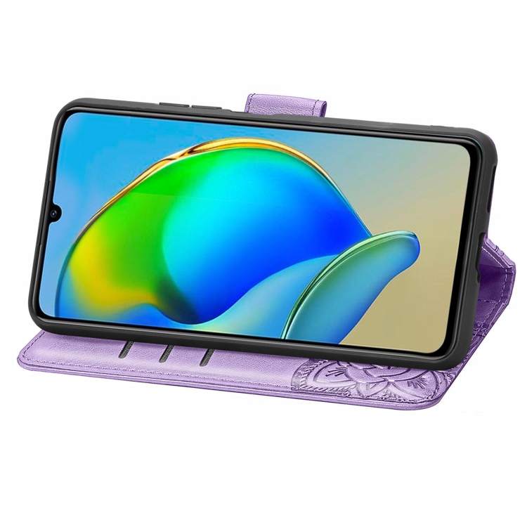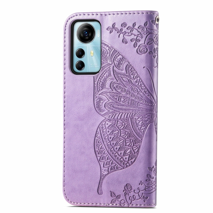 Funda de Cuero para ZTE Blade V41 Smart Butterfly Love Flower En Relieve (Púrpura Claro)