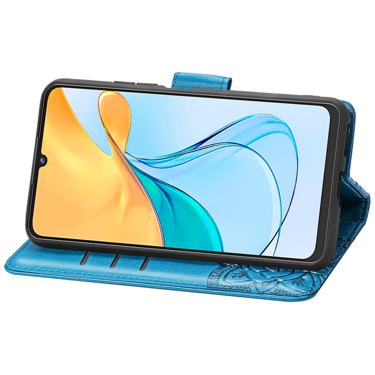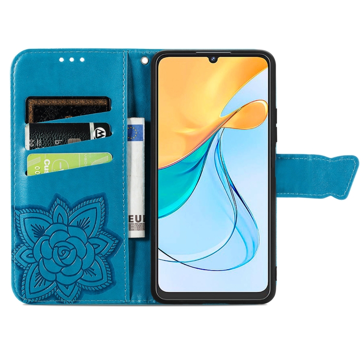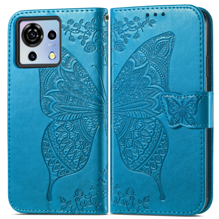 Funda de Cuero En Relieve para ZTE Blade V50 Vita Butterfly Love Flower (Azul)