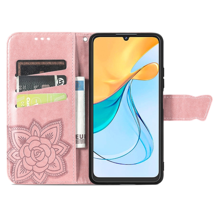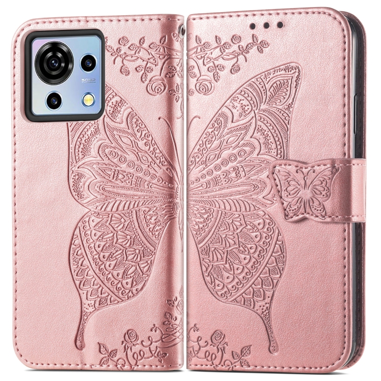 Funda de Cuero para ZTE Blade V50 Vita Butterfly Love Flower en Relieve (Oro Rosa)
