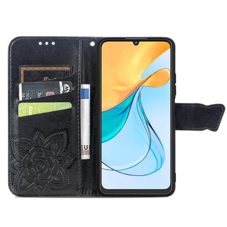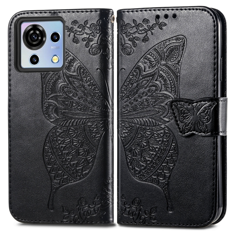 Funda de Cuero para ZTE Blade V50 Vita Butterfly Love Flower en Relieve (Negro)