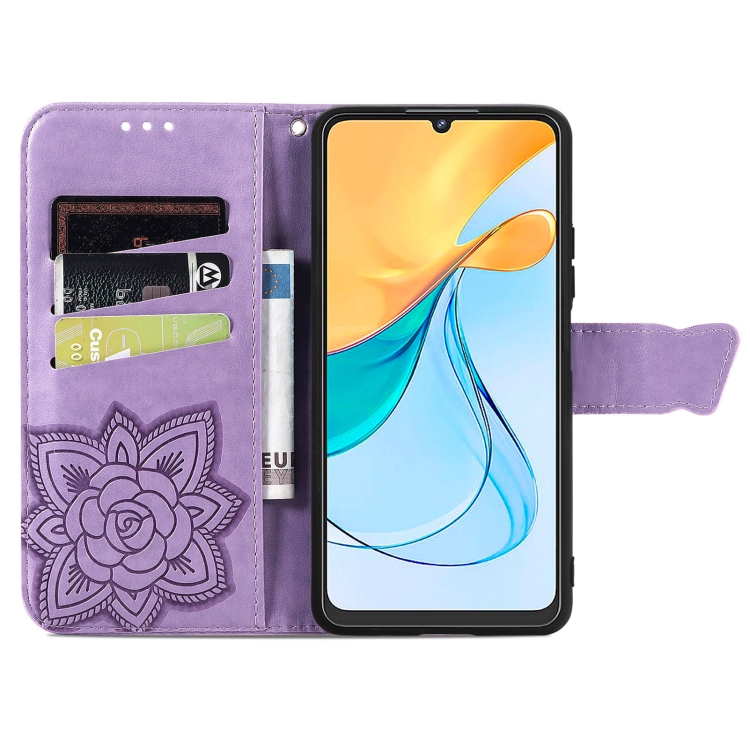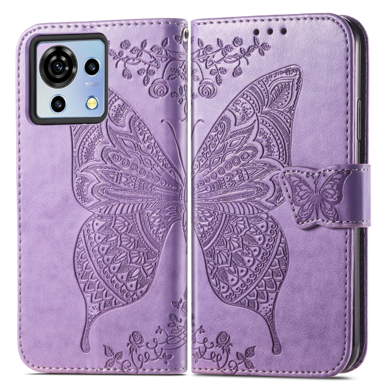Funda de Cuero para ZTE Blade V50 Vita Butterfly Love Flower en Relieve (Púrpura Claro)