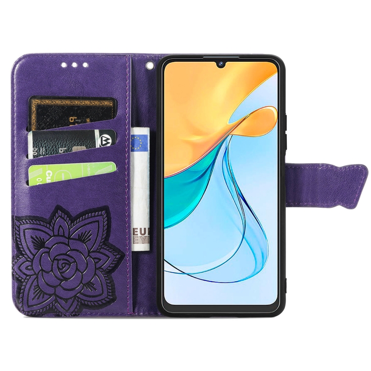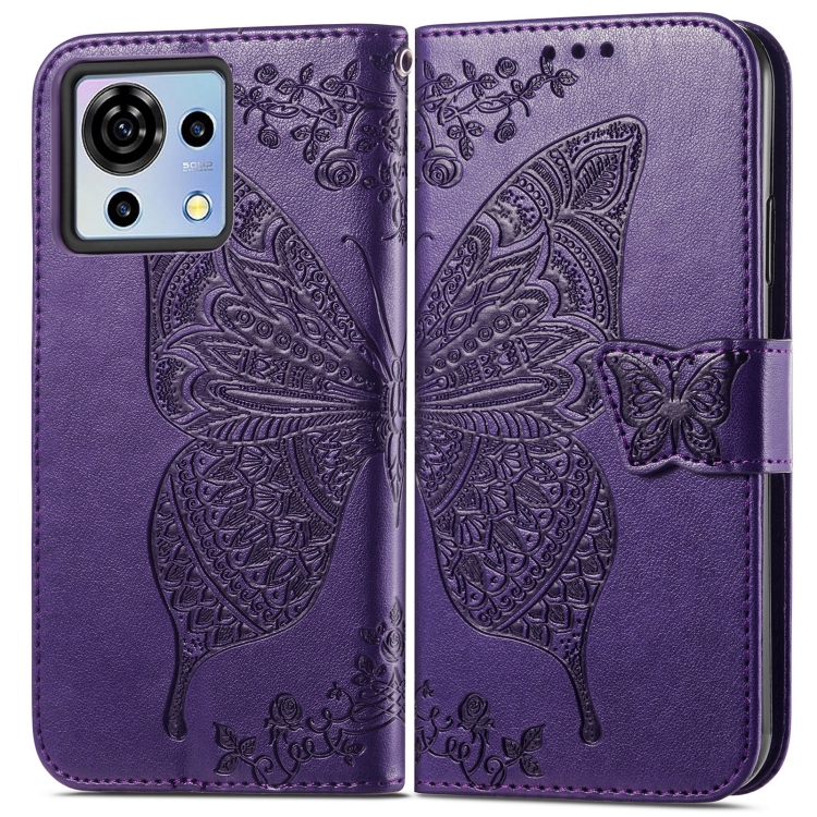 Funda de Cuero para ZTE Blade V50 Vita Butterfly Love Flower en Relieve (Púrpura Oscuro)