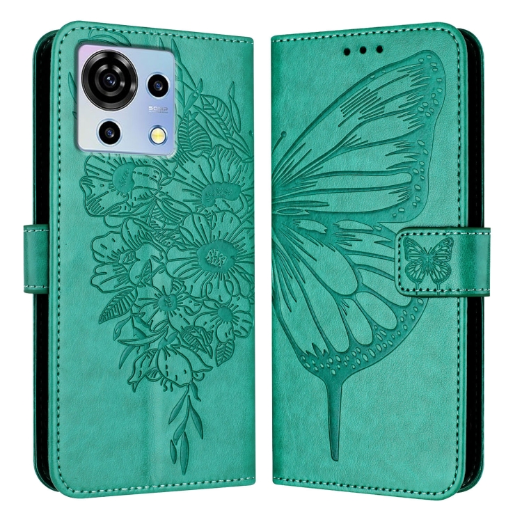 Funda de Cuero para ZTE Blade V50 Vita con Mariposa en Relieve (Verde)