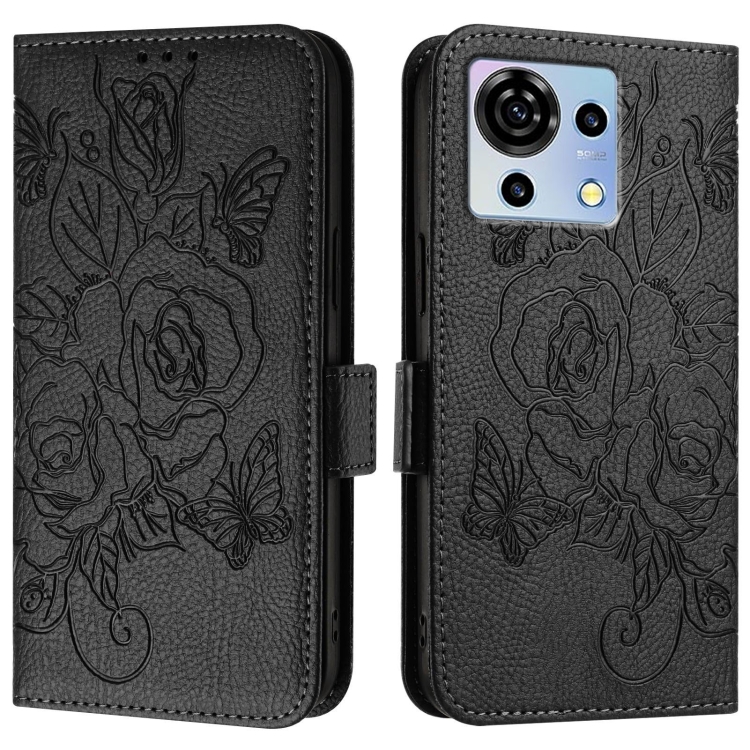 Funda para ZTE Blade V50 Vita de Cuero Antirrobo RFID con Relieve Rosa (Negro)