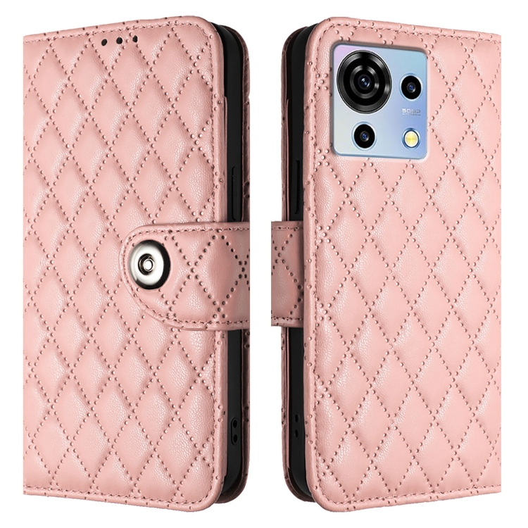 Funda para ZTE Blade V50 Vita de Cuero con Tapa Textura Rombal y Cordón (Rosa Coral)