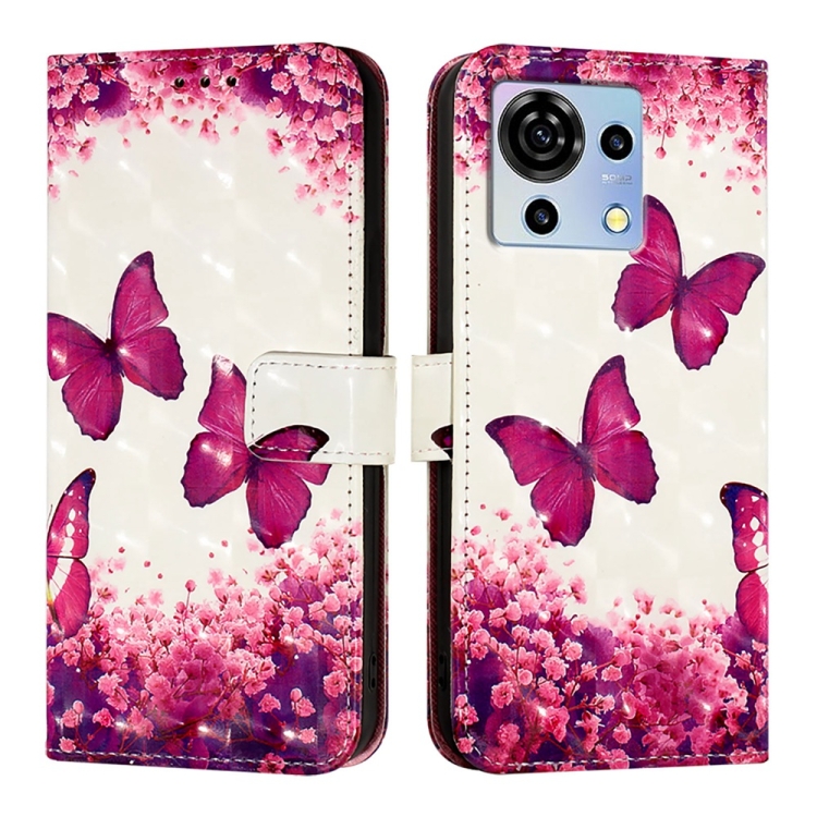 Funda para ZTE Blade V50 Vita de Cuero con Tapa Horizontal y Pintura 3D (Mariposa Rosa)