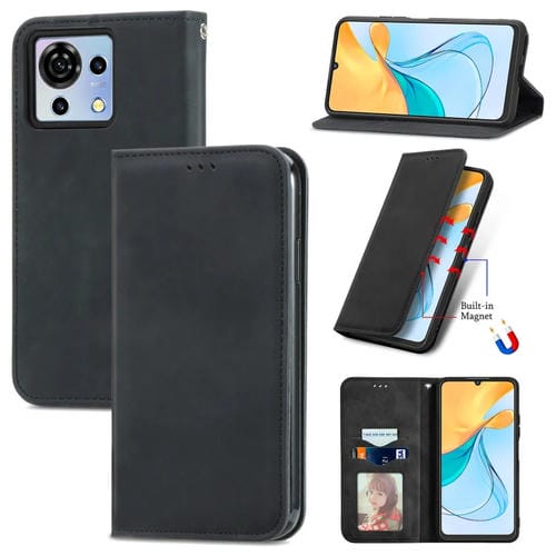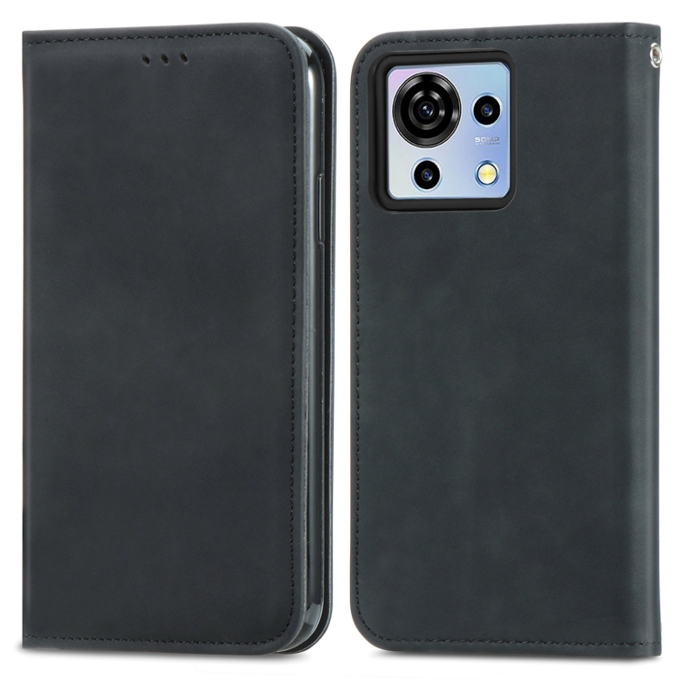 Funda de Cuero Magnética para ZTE Blade V50 Vita Retro Skin Feel (Negro)