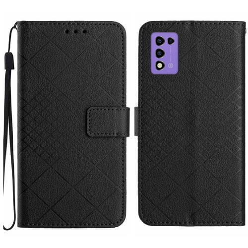 Funda de Cuero ZTE Libero 5G Iii con Textura de Rejilla Rómbica (Negro)