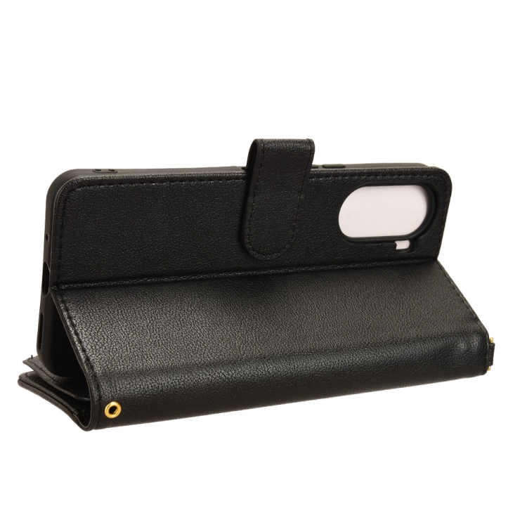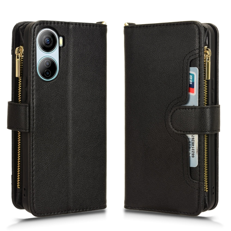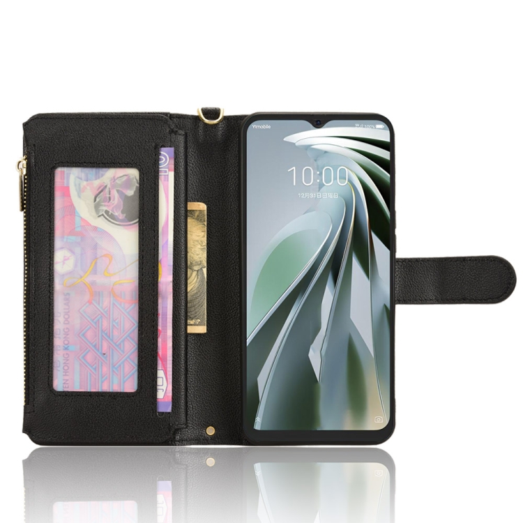 Funda de Cuero para ZTE Libero 5G Ⅳ con Cremallera y Textura Litchi (Negro)