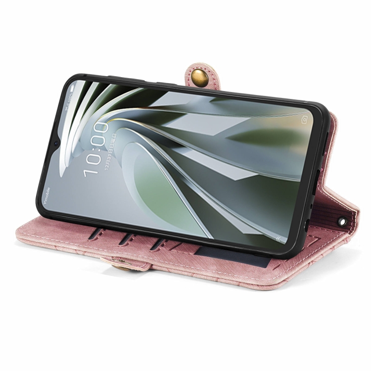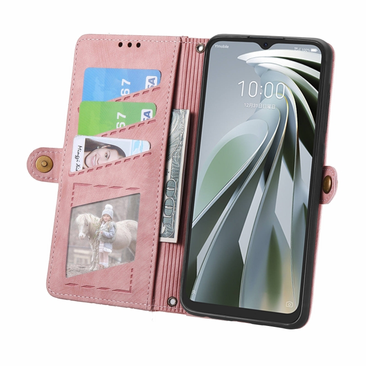 Funda para ZTE Libero 5G Iv de Cuero con Hebilla Lateral y Billetera con Cremallera (Rosa)