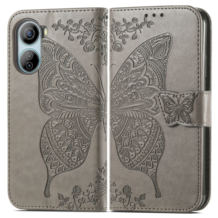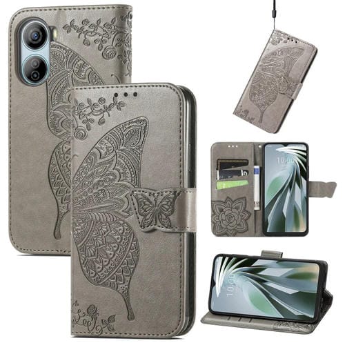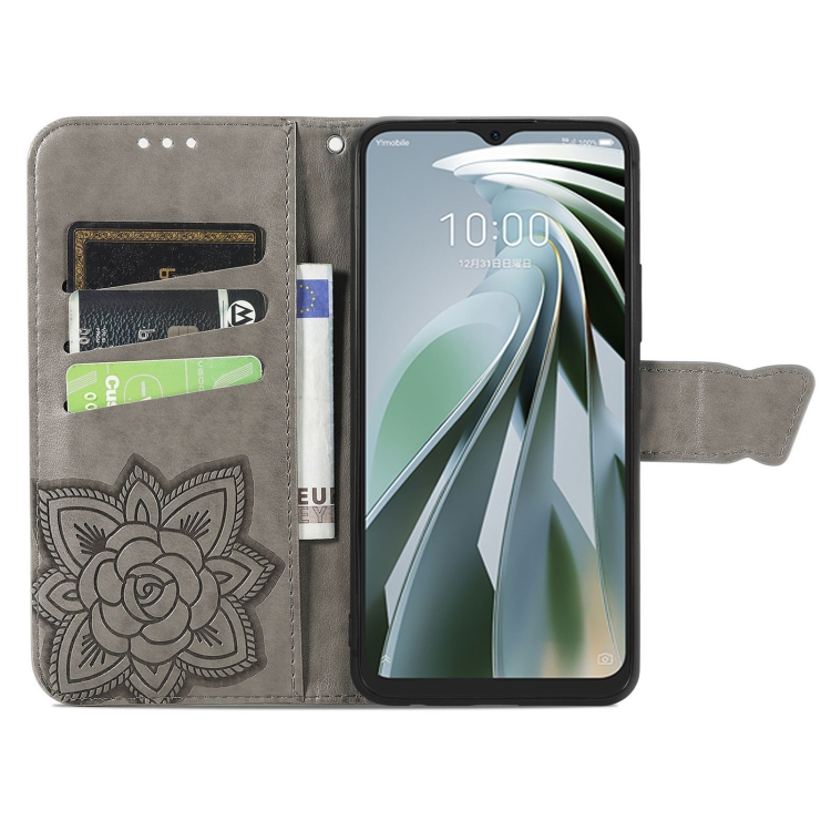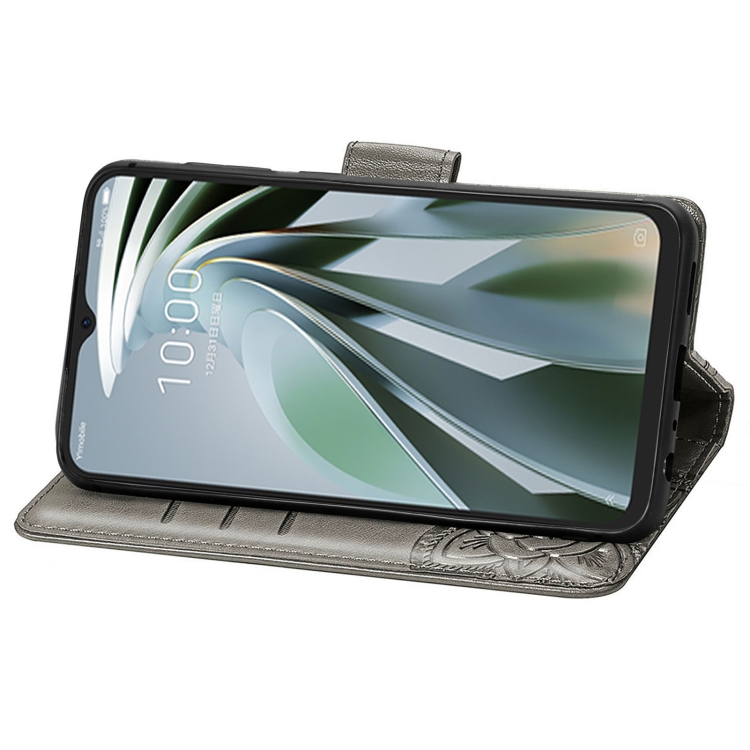 Funda para ZTE Libero 5G Iv de Cuero con Relieve Flor de Amor y Mariposa (Gris)