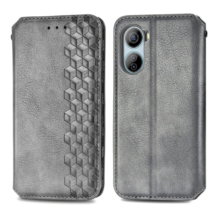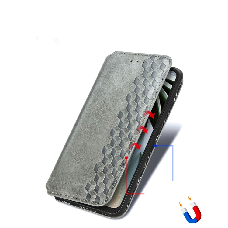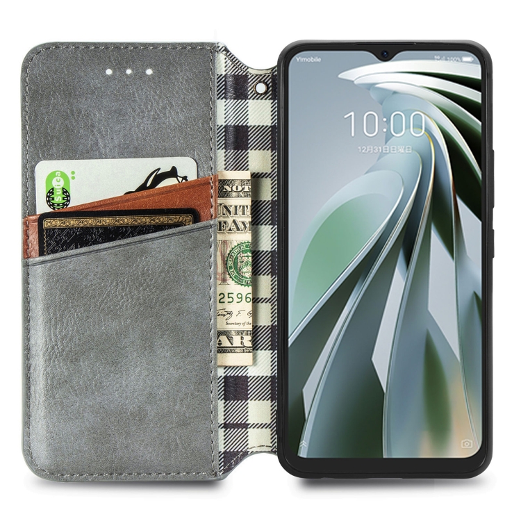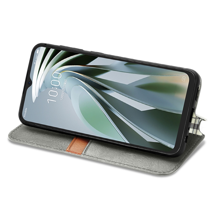 Funda para ZTE Libero 5G Iv de Cuero Magnético Prensado con Rejilla Cúbica (Gris)