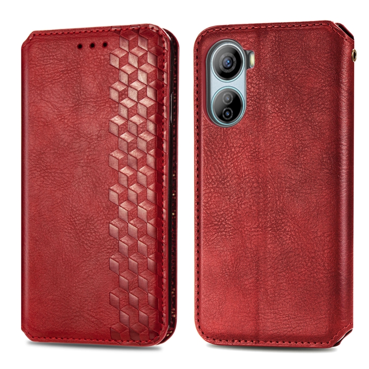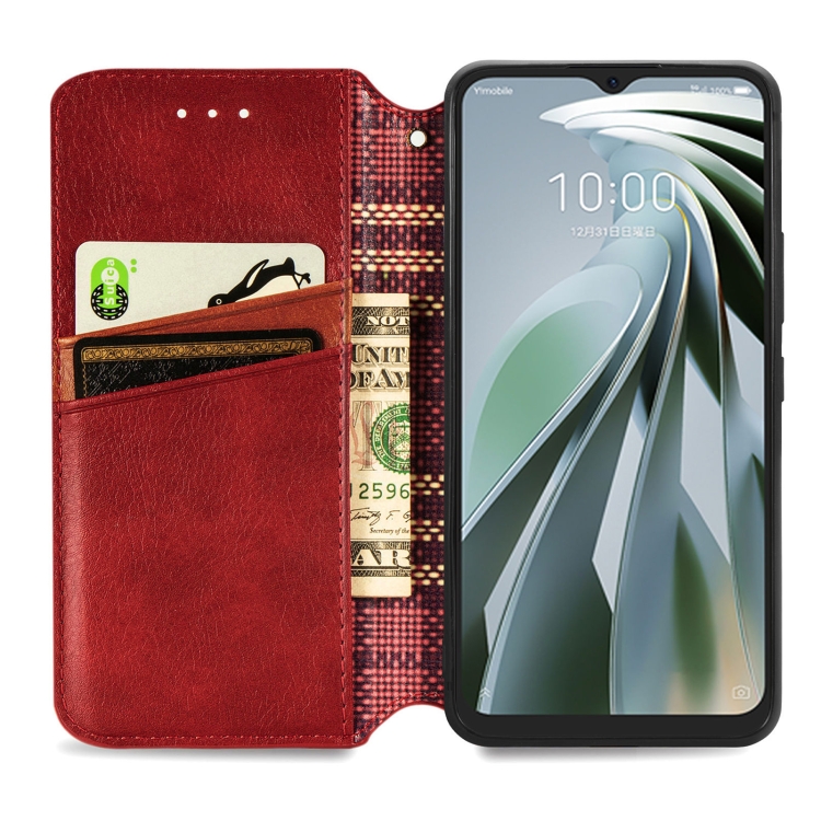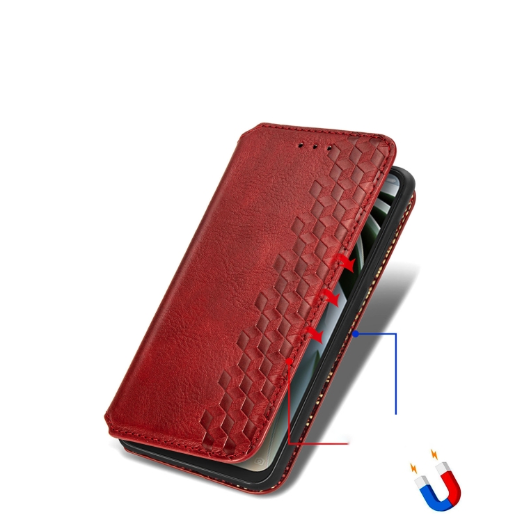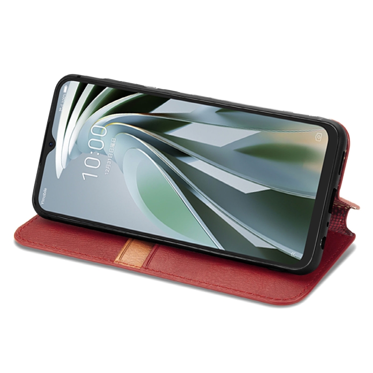 Funda para ZTE Libero 5G Iv de Cuero Magnético Prensado con Rejilla Cúbica (Rojo)