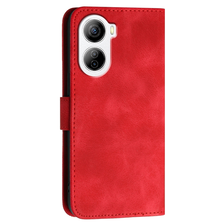 Funda de Cuero con Tapa para ZTE Libero 5G Iv Yx0080 con Patrón Grid Butterfly y Cordón (Rojo)