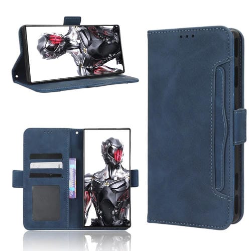 Funda de cuero para ZTE Nubia Red Magic 8 Pro + Skin Feel Becerro con ranuras para tarjetas (Azul)