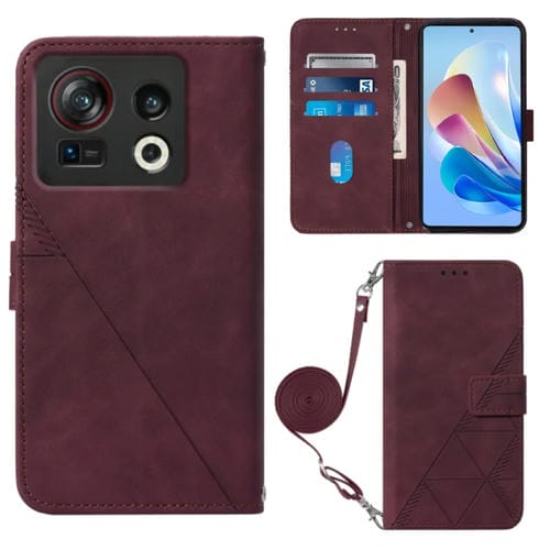 Funda de Cuero ZTE Nubia Z40S Pro Crossbody 3D con Tapa En Relieve (Rojo Vino)