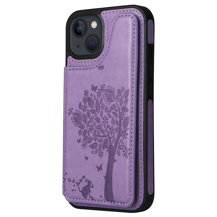 Estuche a Prueba de Golpes para iPhone 13 Mini Patrón Árbol de Gato (Púrpura)