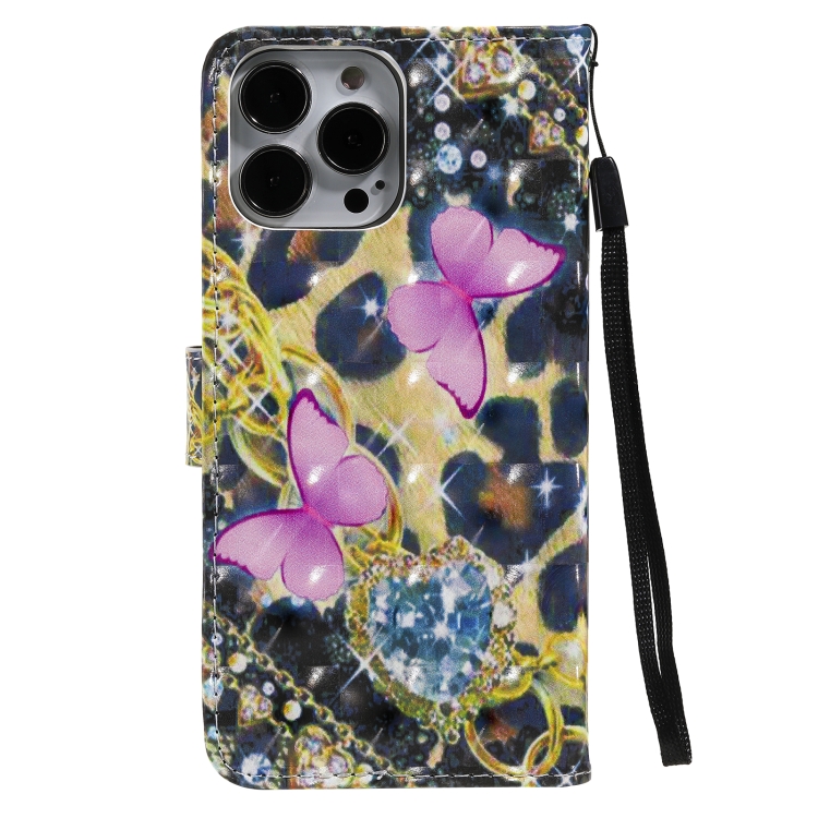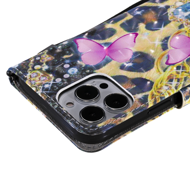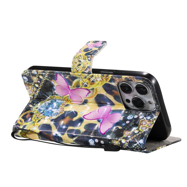 Funda de Cuero Horizontal con Soporte y Billetera para iPhone 13 Pro Max (Mariposa Rosa)