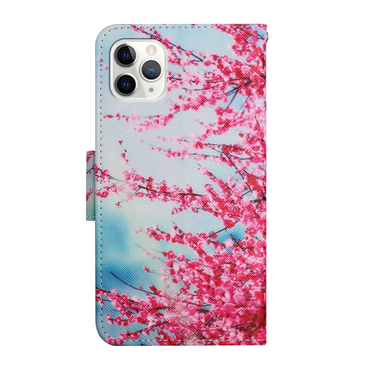 Funda Horizontal de Cuero Patrón Pintado con Soporte y Ranura para Tarjeta y Billetera para iPhone 11 Pro (Flores Rojas de Cerezo)