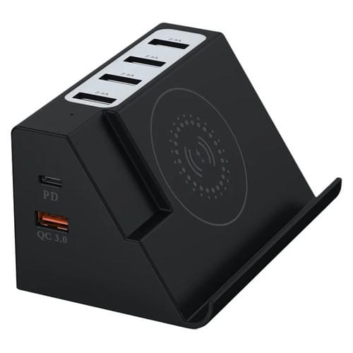 Cargador Multifunción 6 Puertos Pd 20W Qc 3.0 Carga Inalámbrica (Enchufe Ee. Uu.)