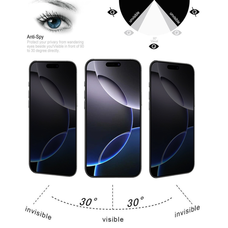 Película de Vidrio Templado Antiespía para iPhone 16 Pro Max Cobertura Total Alta Transparencia