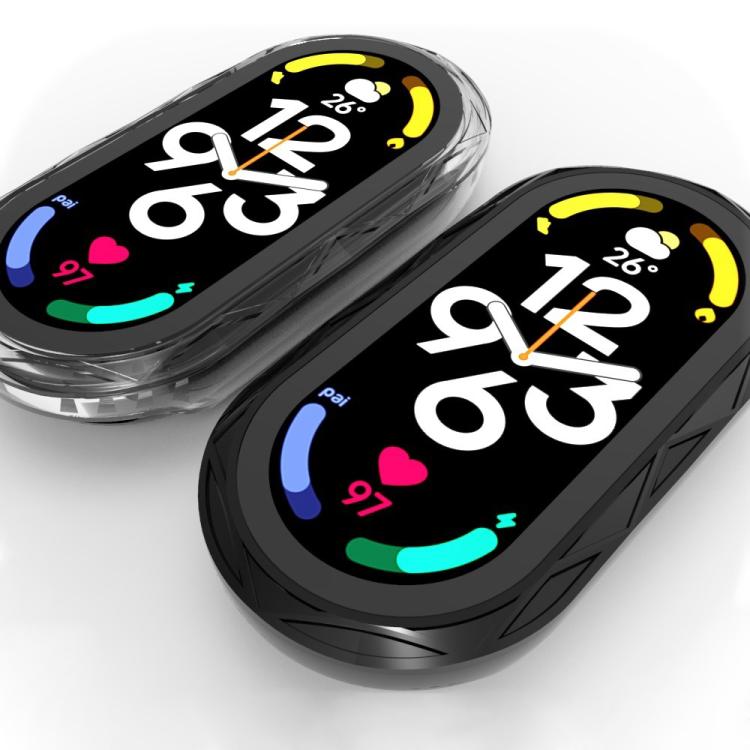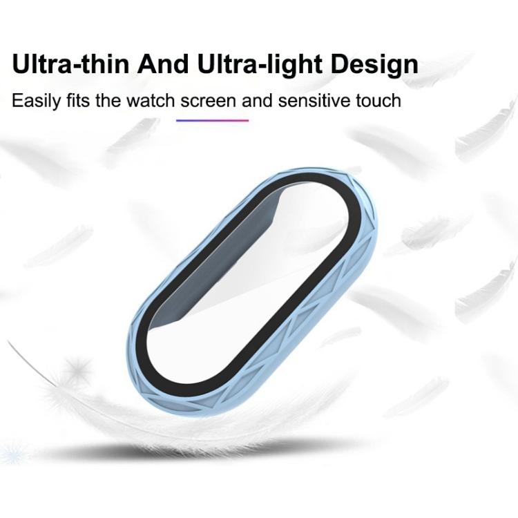 Película de vidrio templado con textura de nido de pájaro para Xiaomi Smart Band 9/9/8 NFC, funda de PC integrada (blanco transparente)