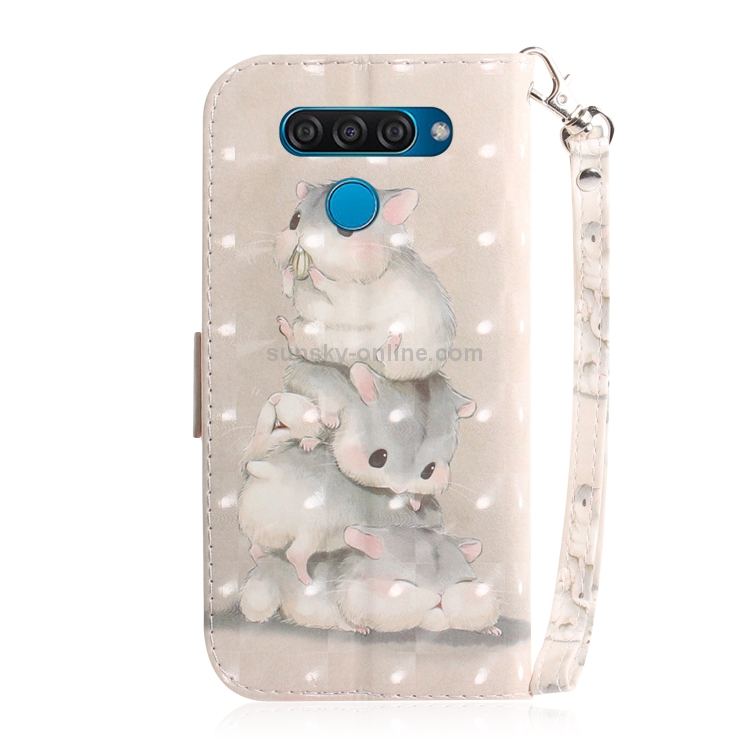 Funda de Cuero con Tapa Horizontal LG Q60 con Pintura 3D Tres Ardillas, Soporte y Ranuras para Tarjetas