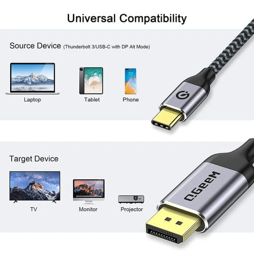 • 1x Cable Adaptador Qgeem QG-UA13 Tipo-C a DP 4K 60Hz Trenzado de Nailon 1,8 m