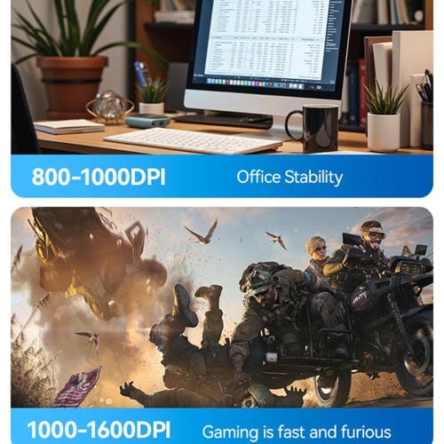 4. Configuración de DPI ajustable: Elige entre 800, 1200 o 1600 DPI para personalizar la sensibilidad del mouse según tus tareas y preferencias.