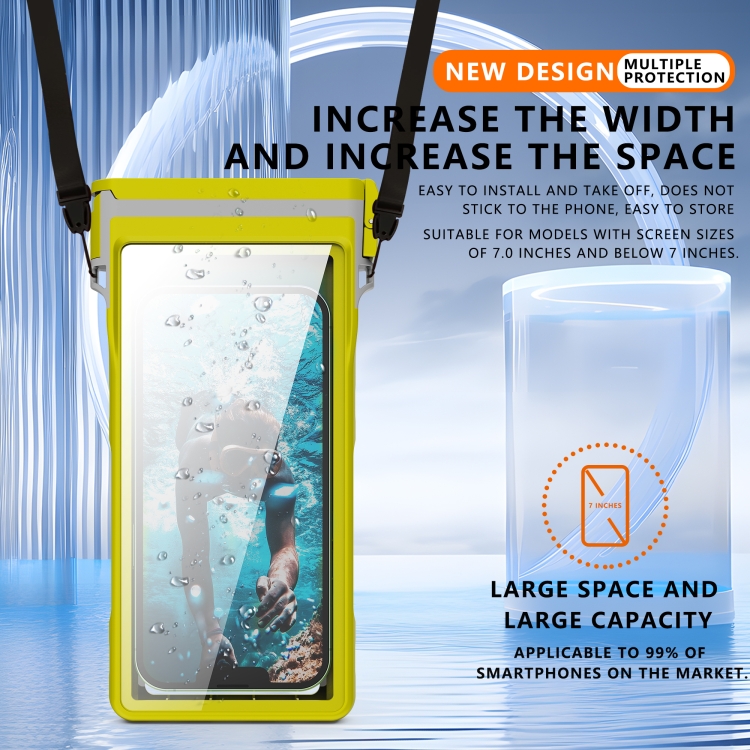 1. Estuche impermeable: un estuche es adecuado para más usuarios.Admite el 99% de los tipos de teléfonos móviles.Puede acomodar pantallas de visualización de 7 pulgadas o menos.Pantalla táctil sensible al tacto compatible bajo el agua (toque de profundidad de agua de 20 cm).