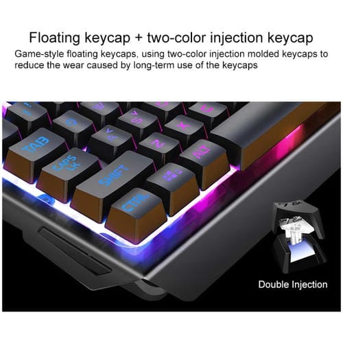 - 1x Set de Ratón y Teclado Mecánico Yindiao V2 de Sensación para Juego (Luz de Arco Iris Negro)
