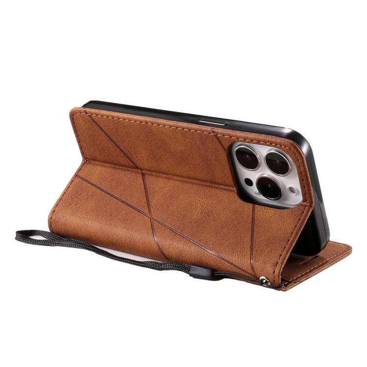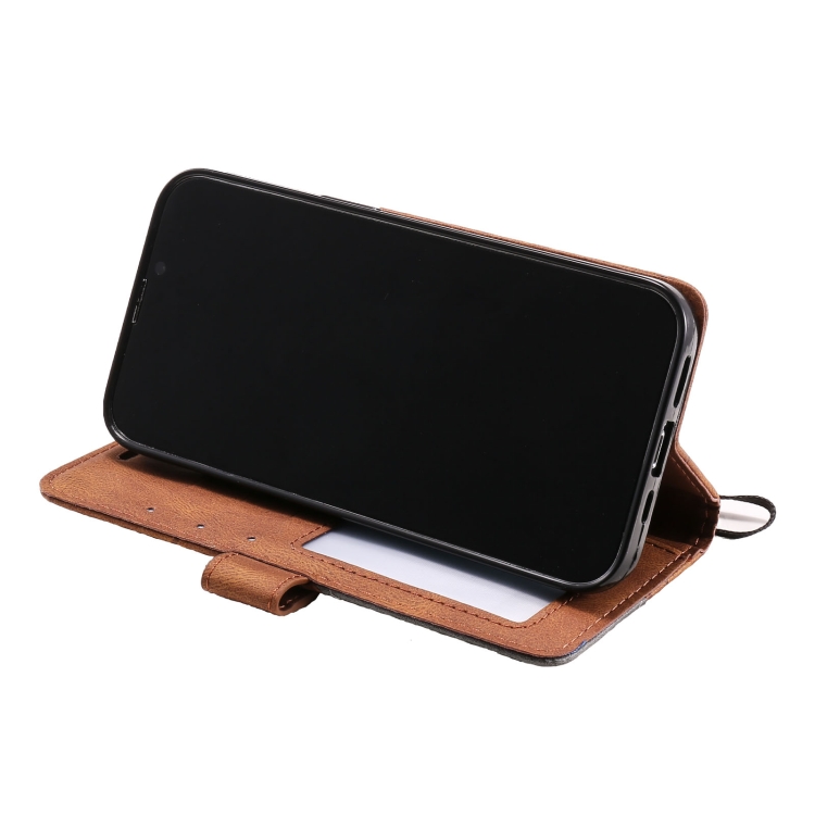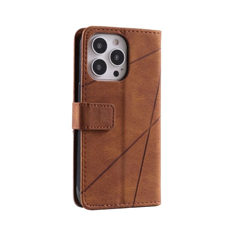 Tapa Horizontal Empalme Piel para iPhone 13 Pro (Brown)