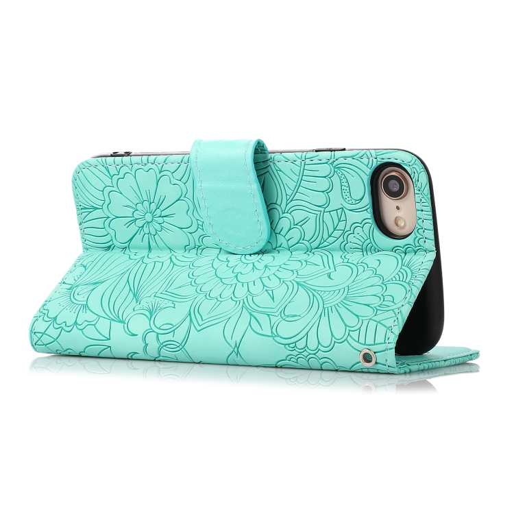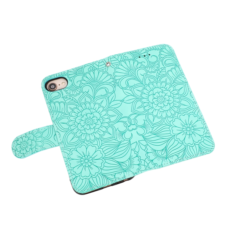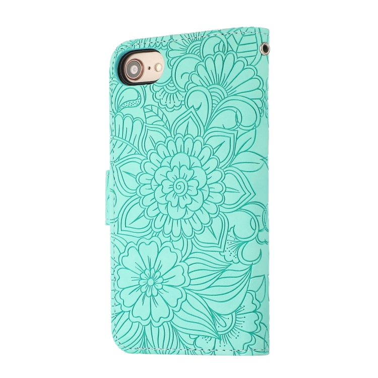 Funda de Cuero Siente la Piel Girasol En Relieve Horizontal con Soporte y Tragamonedas para iPhone 6 / 6S (Verde)