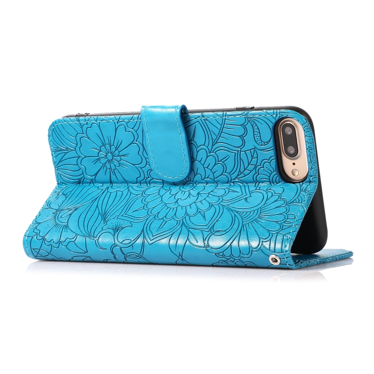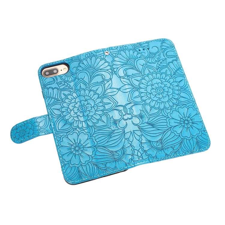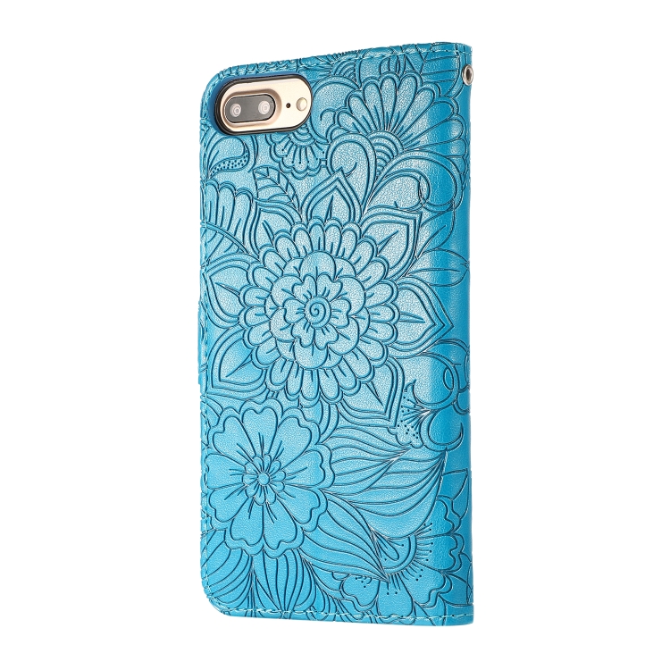 Funda de Cuero Siente la Piel Girasol En Relieve Horizontal con Soporte y Tarjetero para iPhone 6 Plus / 6S Plus (Azul)