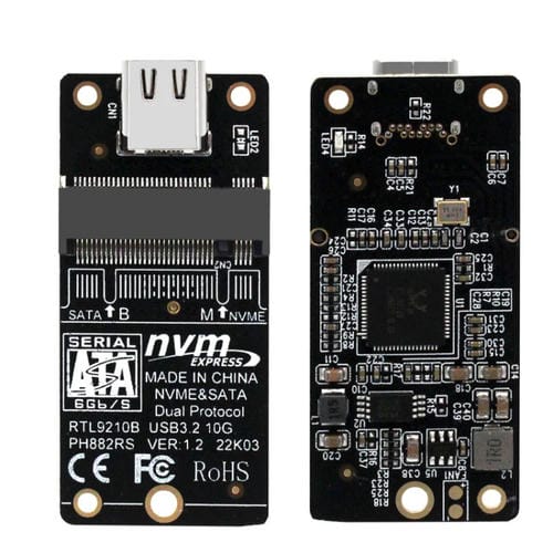 - 1x Tarjeta de Transferencia de Caja de Disco Duro M.2 NVMe RTL9210B Chip Tipo-C USB-C USB3.1 Gen2 10Gbps (Negro)