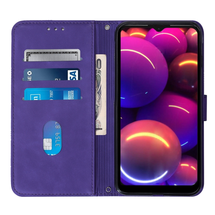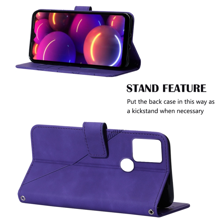 Funda de Cuero con Tapa para TCL 305I con Huella Dactilar Crossbody 3D en Relieve (Púrpura)