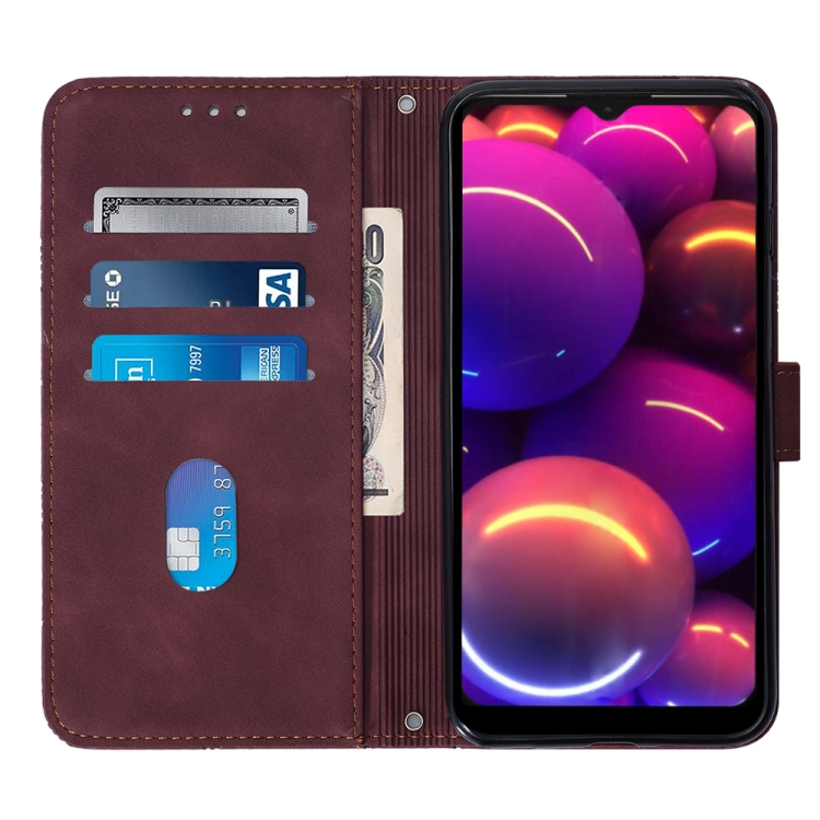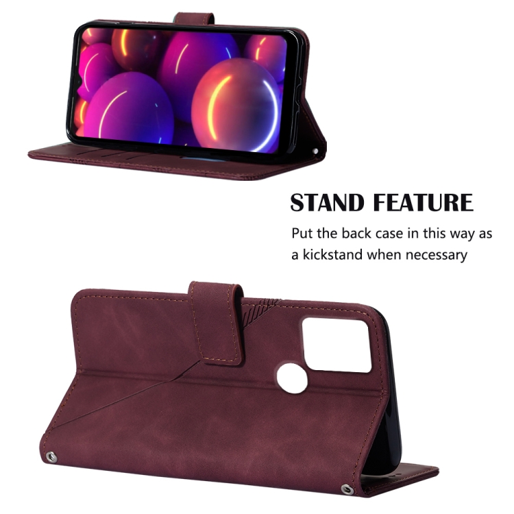 Funda de Cuero con Tapa para TCL 305I con Huella Dactilar Crossbody 3D En Relieve (Rojo Vino)