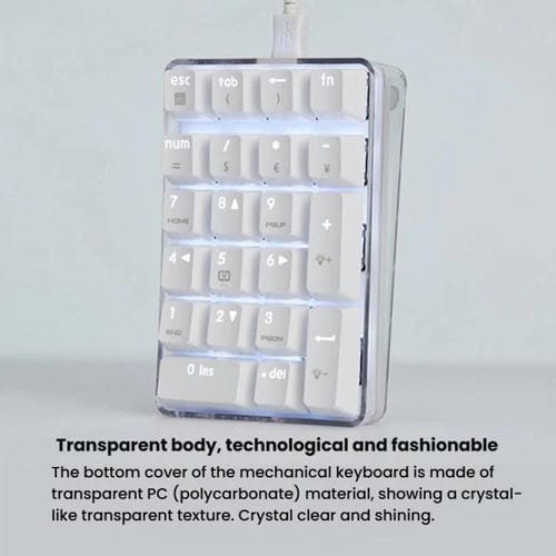 3. Cuerpo transparente, con un toque tecnológico y moderno, la cubierta inferior del teclado mecánico está hecha de material transparente de policarbonato, presentando una textura cristalina.Transparente y deslumbrante.