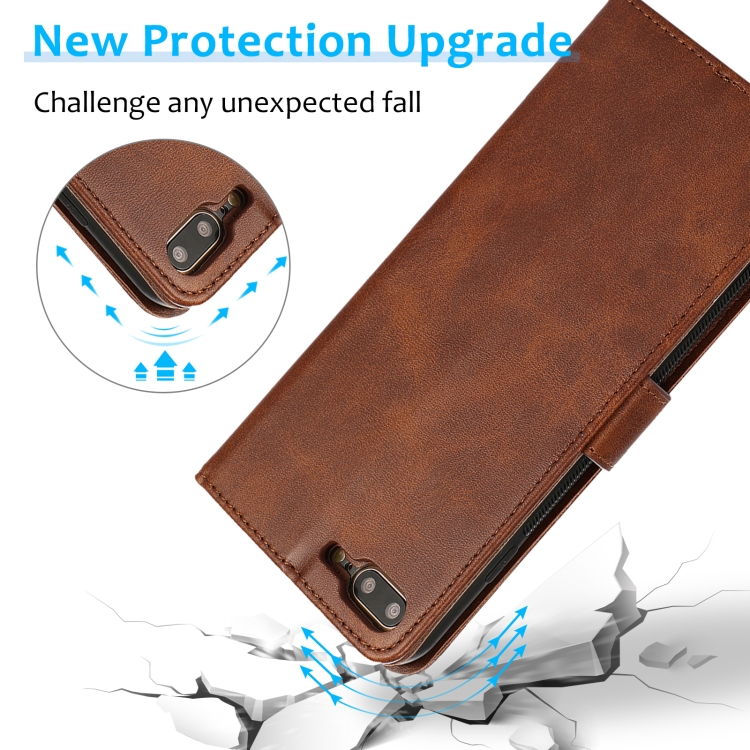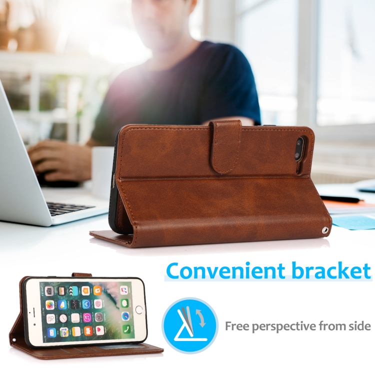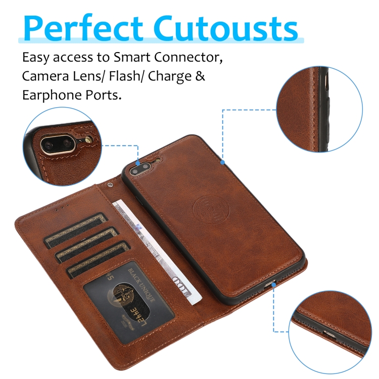 Funda de Cuero 2 en 1 para iPhone 8 Plus 7 Plus con Soporte y Tarjetero (Brown)