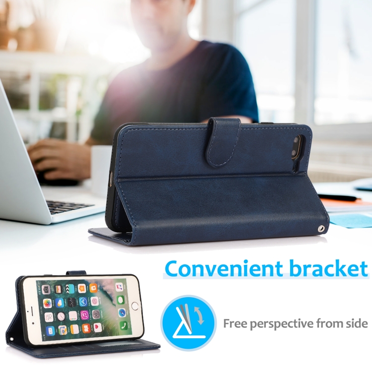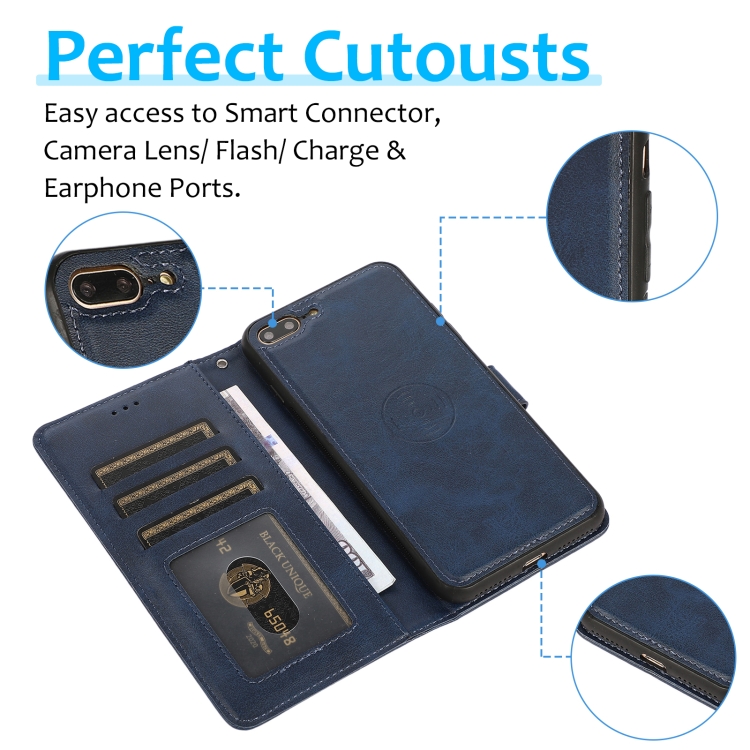 Funda de Cuero 2 en 1 iPhone 8 Plus 7 Plus Cubierta Magnética Flip Horizontal (Azul)