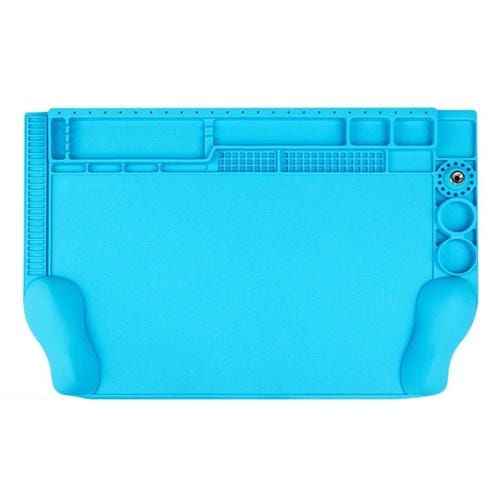 La Estera de Trabajo para Reparación y Soldadura de Silicona Magnética Convexa 3D (604) es una Herramienta profesional diseñada para facilitar las tareas de Reparación electrónica. Fabricada en Silicona respetuosa con el Medio ambiente, esta estera soporta altas temperaturas de hasta 500 grados, lo que la hace ideal para procesos de soldadura en Placas de circuito, Teléfonos Móviles, Computadoras Portátiles y otros dispositivos electrónicos. Su diseño ergonómico incorpora muñequeras 3D agrandadas y gruesas que proporcionan comodidad durante largas sesiones de trabajo. Además, cuenta con un imán fuerte integrado y ranuras de posicionamiento para tornillos y Accesorios, permitiendo un montaje y desmontaje ordenado y eficiente de Componentes electrónicos. Su superficie Flexible y resistente evita deformaciones, asegurando durabilidad y funcionalidad en ambientes de trabajo exigentes.