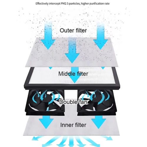 • Lámpara dual con luz blanca y verde, sistema de filtración antipolvo de tres capas, Ventilador doble con potencia ajustable, mesa de trabajo de 35 x 23,2 x 31 cm, peso aproximado 5,025 kg, voltaje 110-220 V, Corriente nominal 750 mA