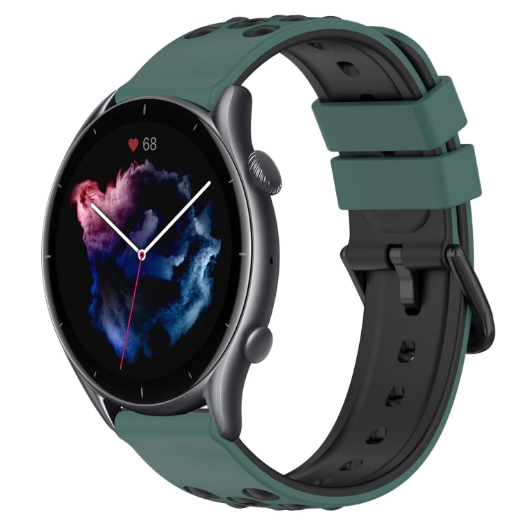 Correa de Reloj Amazfit GTR 3 Pro 22mm Silicona Porosa Dos Colores (Verde Oliva + Negro)