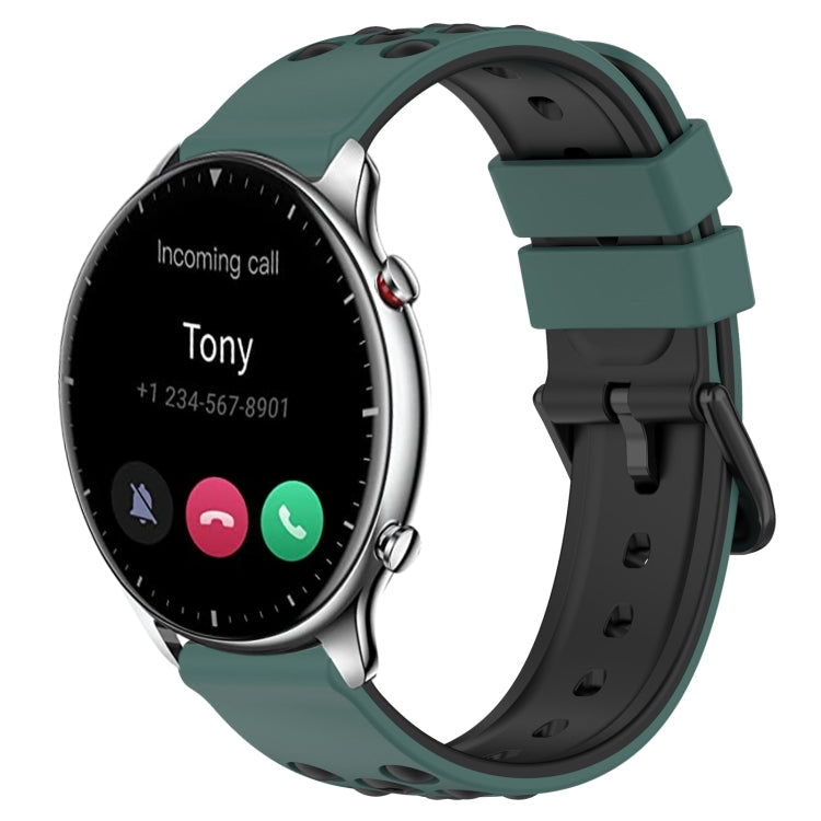 Correa de Reloj para Amazfit GTS 2 20mm Silicona Porosa Dos Colores (Verde Militar + Negro)
