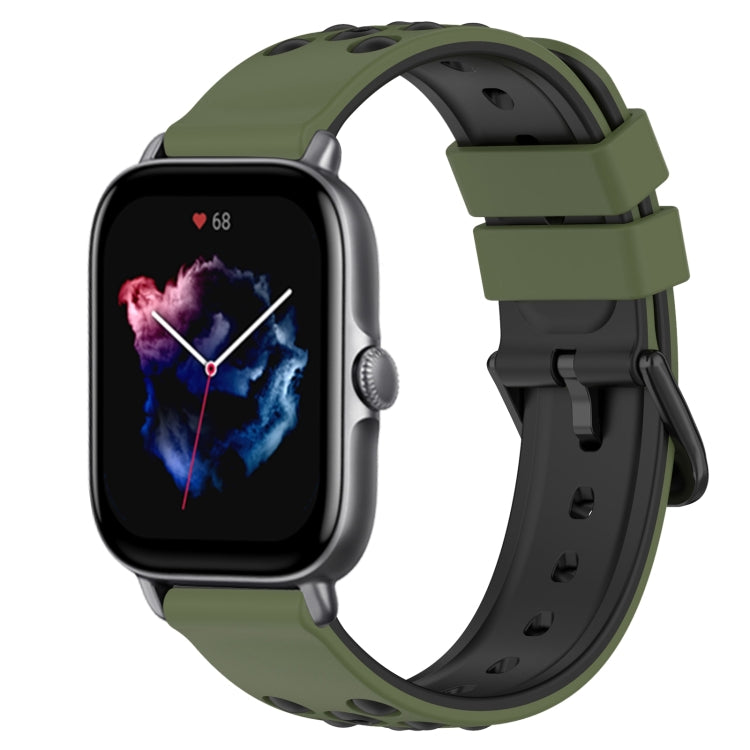 Correa de Silicona para Amazfit GTS 3 20mm Porosa Dos Colores (Verde Militar + Negro)