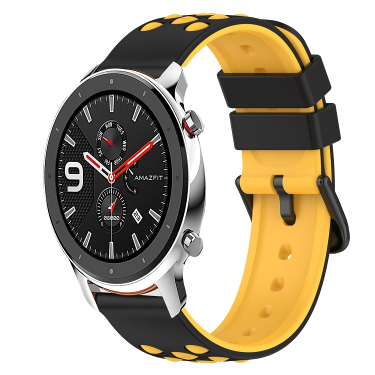 Para Amazfit Gts 2 20mm Correa de Reloj de Silicona Porosa de Dos Colores (Negro + Amarillo)