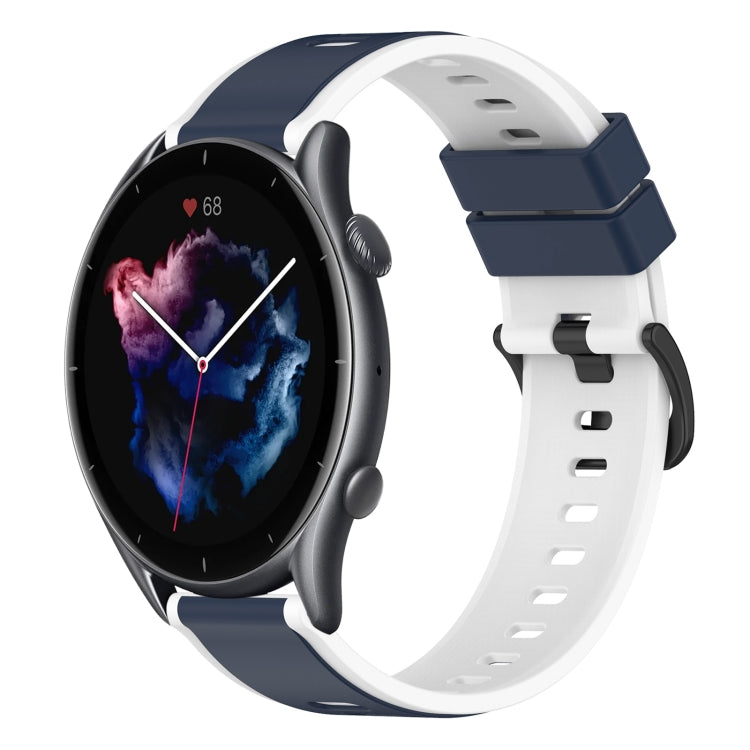 Correa de Reloj para Amazfit GTR 3 22mm Silicona Dos Colores (Azul Medianoche + Blanco)